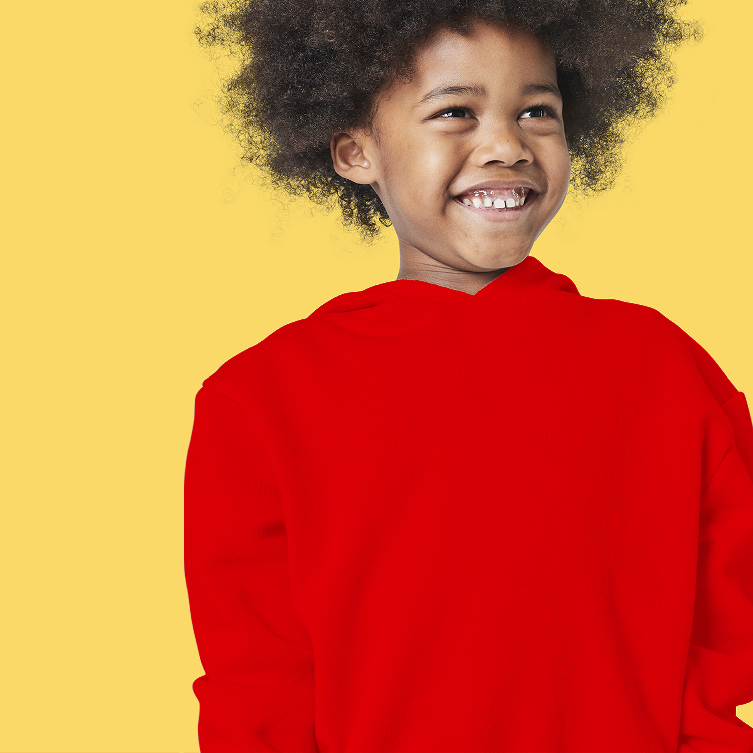 Resistente combinazione di cotone filato ad anelli e poliestere. Felpa unisex bambino di media pesantezza con cappuccio con interno felpato e tasca a canguro. Orlo a costine elasticizzato in vita e all'estremità' delle maniche. Cappuccio doppio tessuto senza cordini.
